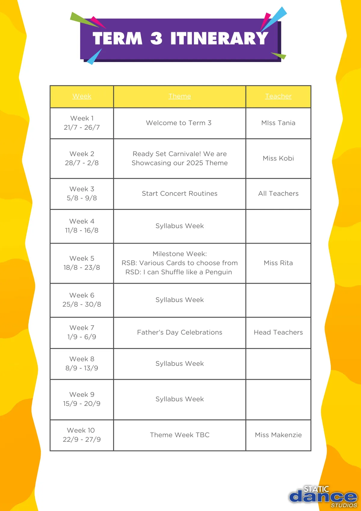TERM 3 ITINERARY